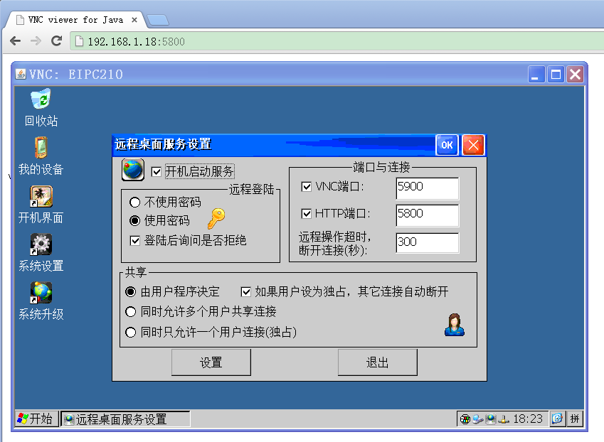支持VNC遠程桌面服務,遠程端可通過VNC工具或者HTTP網(wǎng)頁遠程控制EIPC970,可設置密碼;